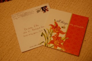 I bypassed sending holiday cards to the masses this year for a simple reason: I got married. Between my save the date cards, wedding invitations and the the thank you notes (that just went out less than a month ago) I figured that everyone had heard enough from me. However, I did take part in a Holiday Card Swap for fun and this weekend I received my first letter from my pen pal.