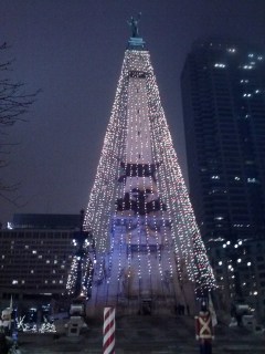 Monument Circle is a cool place to walk around during the holidays. They have the lights up on the monument itself and other decorations lining the streets. You can take a carriage ride through the city and see some of the other monuments and the canal.