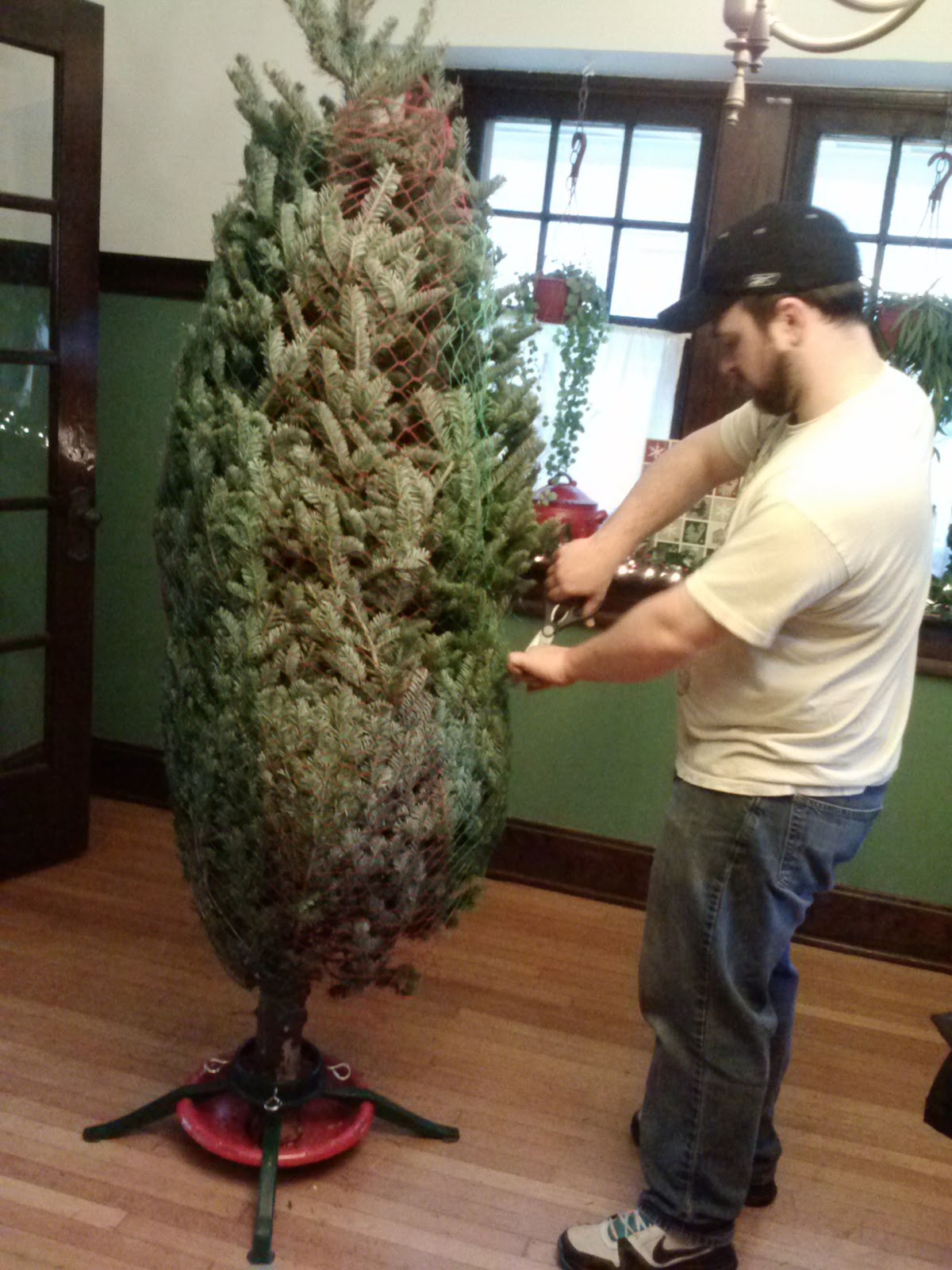 This past Sunday we braved the rain and went out to buy our Christmas tree. We do not cut our own tree because a). my husband hates nature and b). we like to support the local guys who typically set up in parking lots near places like Gold’s Gym. After prowling around the tent for about 10 minutes, we selected our Douglass Fir and after some chainsawing and twining (two real live Christmas tree terms) we had our tree safely back at our house. Here is what followed: