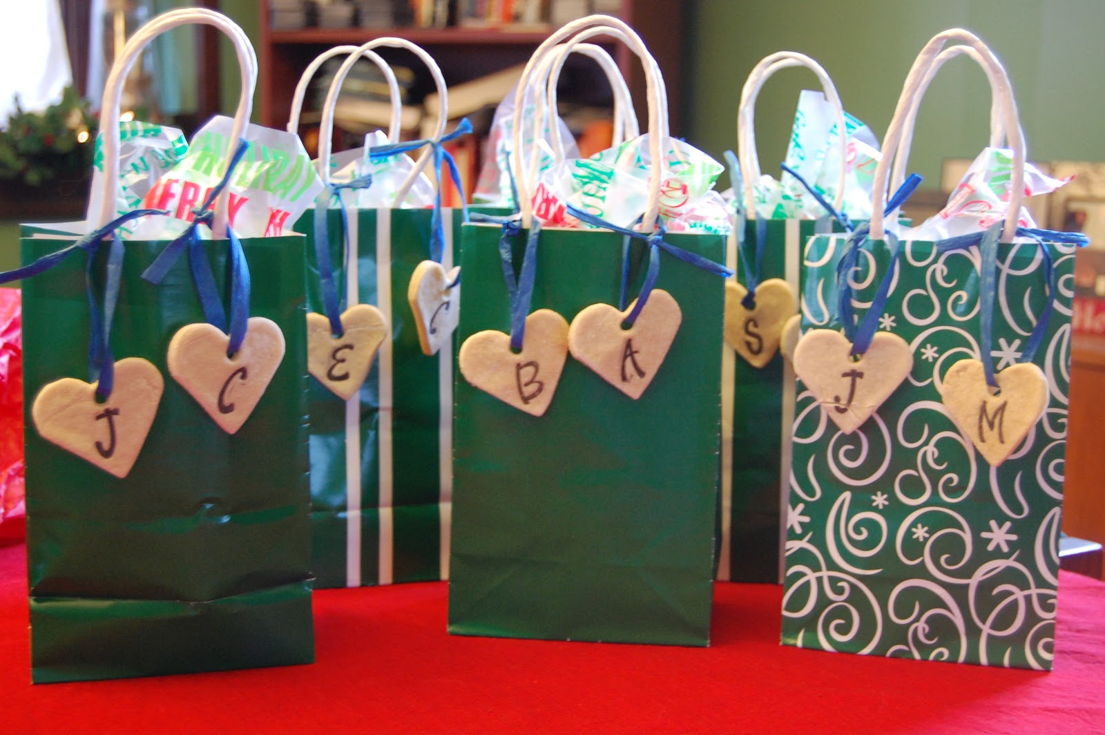 I also made salt dough ornaments for the tags you see on the bags at the bottom of the screen. These are super easy to make and I kept mine pretty simple, but the possibilities are endless. Again, instructions are how to make salt dough ornaments are on Pinterest or you can do a good old fashioned Google search.