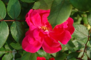 In other news, our shrub rose has produced its first bloom of the season: