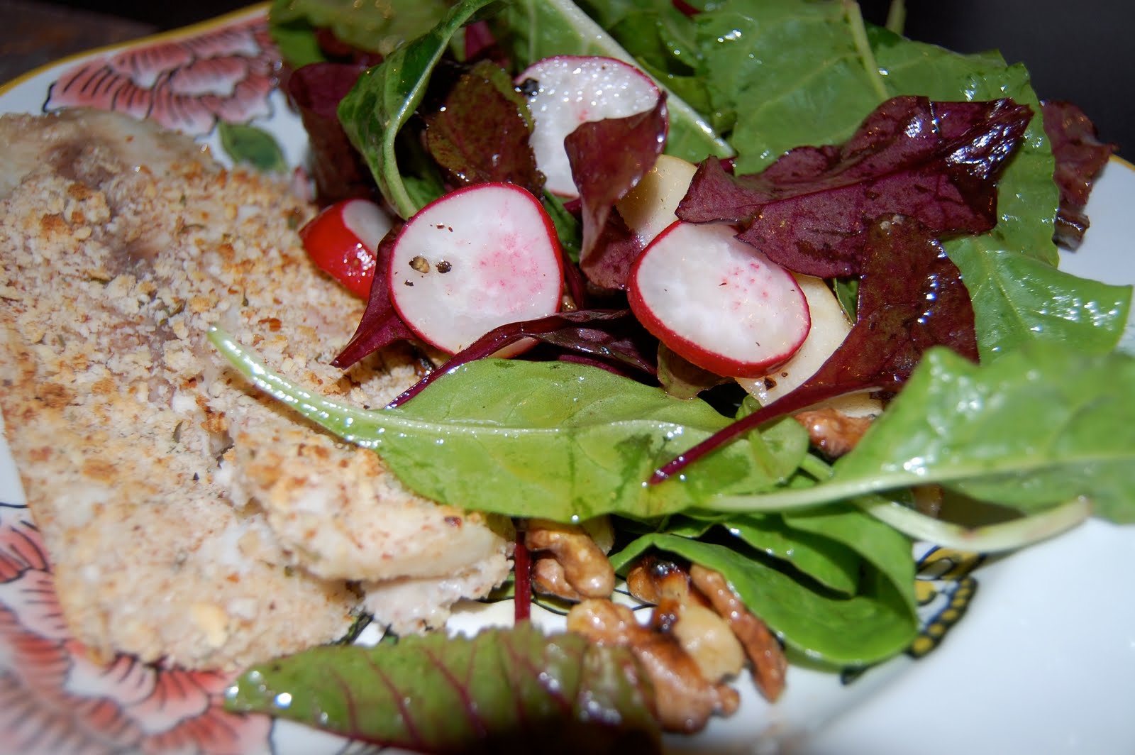 I also made almond crusted talapia last week and made a fresh salad with our CSA bounty.