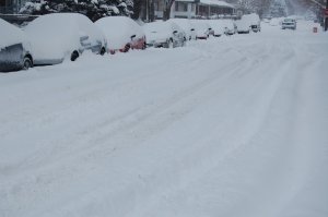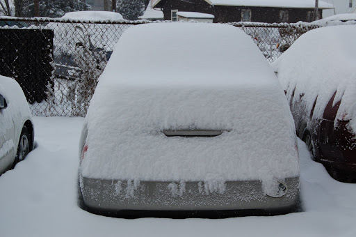 The snowstorm we got on Tuesday/Wednesday morning continues to be annoying. The owners of our apartment building came during lunch yesterday and plowed out the parking lot. This is awesome, but of course the only person who didn’t move their car was the girl who parks next to me, so when I got home last night I still couldn’t park in my spot. I switched with RJ and he parked on the street.