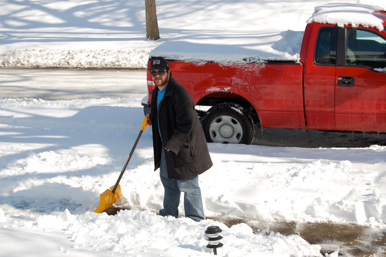 Here are some pictures from the first real snow fall Indy has experienced this winter. You’ll note the picture of R shoveling with a bright yellow snow shovel. This is our second shovel, which we had to purchase this afternoon because someone stole our other blue snow shovel off our porch…